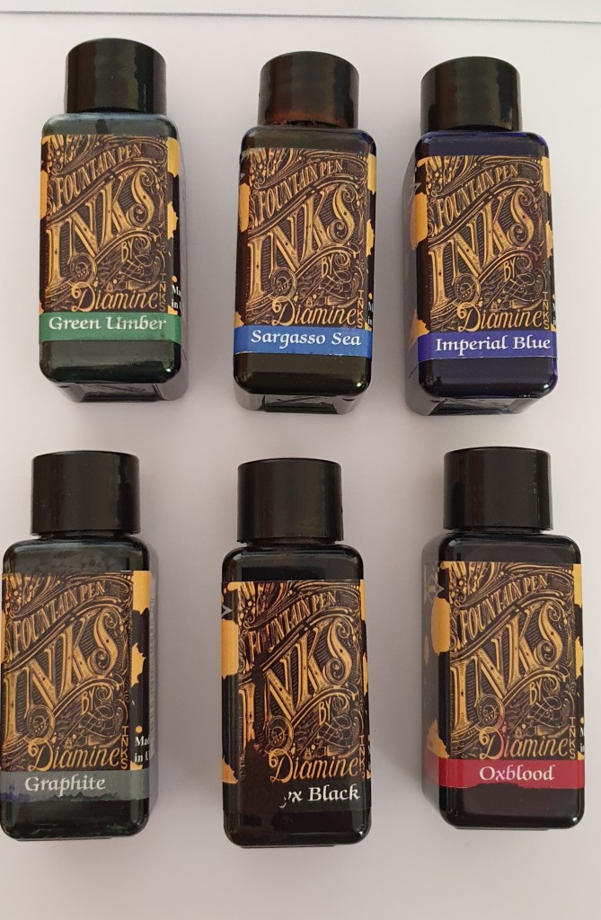 Before I do so, I would like to point out that obviously there are many other inks available and I am particularly fond of Pilot’s Iroshizuku range and KWZ’s inks, amongst others. I chose Diamine as my starter inks because they seemed like a decent punt given their low price point.
