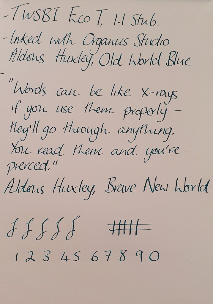 For the price, the TWSBI Eco really is a no brainer. I ought to have purchased one sooner than I did, but I have atoned subsequently. It has features and a build quality rarely found at this price point and is a joy to use.